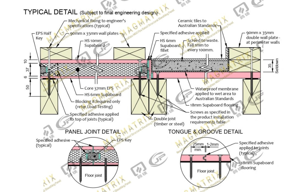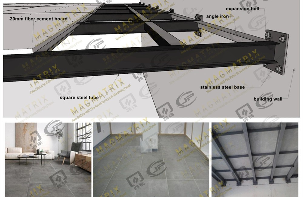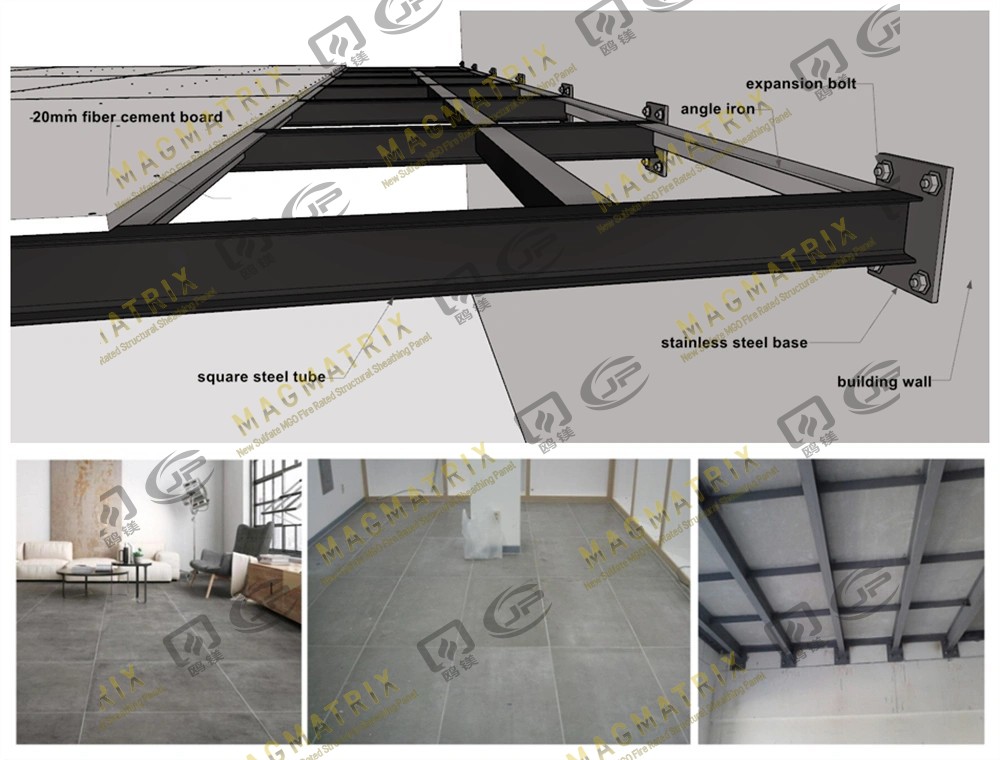 Udělali jsme to Podlahové panely MGO Kombinací oxidu hořčíku s neorganickými minerály a přísadami. Jsou posíleny ze skleněných vláken, aby je vydržely déle. Většina stavitelů volí strukturální panely, které jsou 3/4 "tlusté-právě pro silné a trvalé podlahy. Panely se zamknou společně s okraji jazyka a podložky, což pomáhá rovnoměrně šířit hmotnost a udržuje podlahu stabilní.